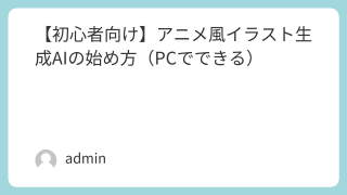 結論:PCがあれば、今日からアニメ風イラストは作れますアニメ風イラスト生成は、専用の知識や高価な機材がなくてもPC1台で可能です。この記事では何を準備すればいいか最低限の設定失敗しない考え方を 初心者向けに短く 解説します。生成AIでアニメ...