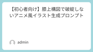アニメ風イラストを生成していて、「全身は崩れる」「構図が安定しない」と感じたことはありませんか?初心者の方には、まず「膝上構図」がおすすめです。この記事では、膝上構図で安定しやすいアニメ風イラスト生成プロンプトを紹介します。膝上構図が初心者...